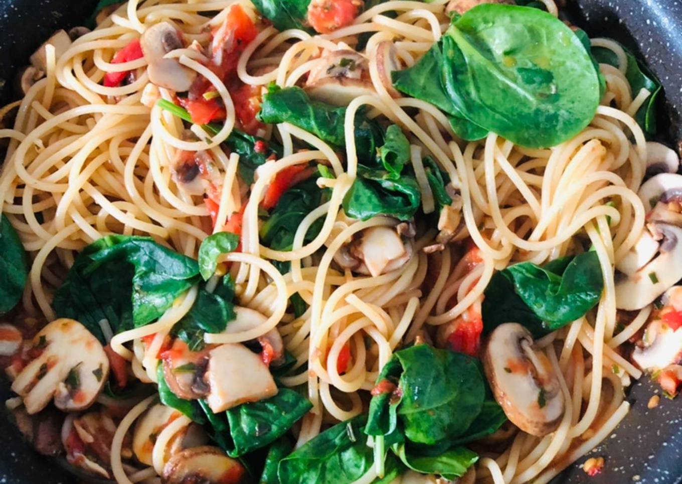 - Mélanger les spaghettis égouttés dans la poele avec les légumes bien assaisonner