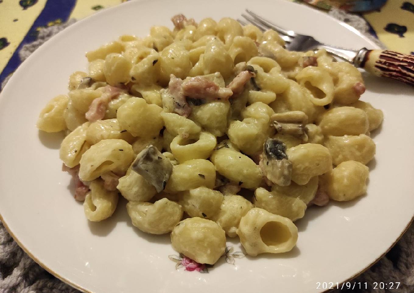 Rien de bien compliqué, il suffit de préparer une carbonara normale, et d'y ajouter des champignons.