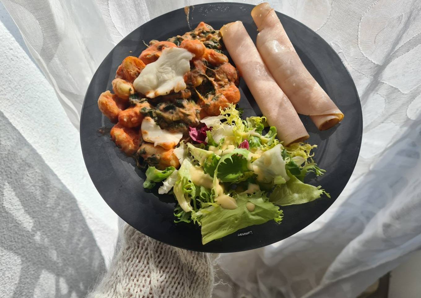 Ingredients and spices that need to be Take to make Gratin gnocchis epinard sauce tomate Mozzarella: