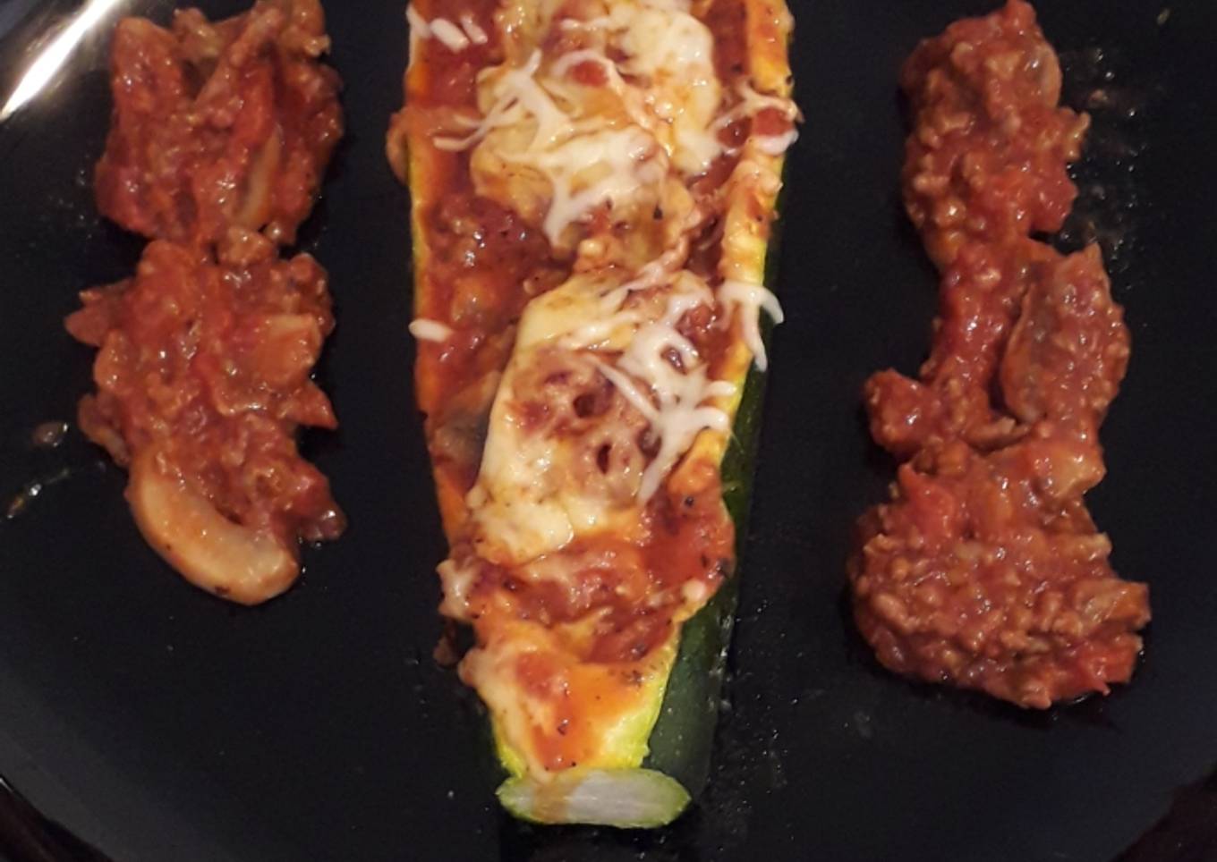 - Lavée et couper le dessus de la courgette puis retirer l'intérieur de la courgette puis ajouter la bolognaise a l'intérieur puis au dessus parsemer le fromage râpé puis mètre au four a 180° pendant 30 a 40 minutes