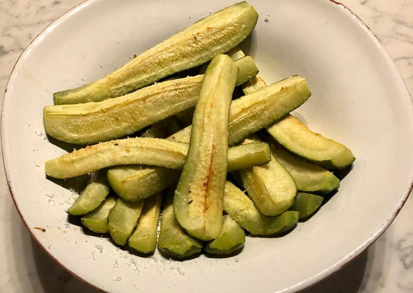 - Laver les courgettes, couper les extrémités. Couper chaque courgette en 4.