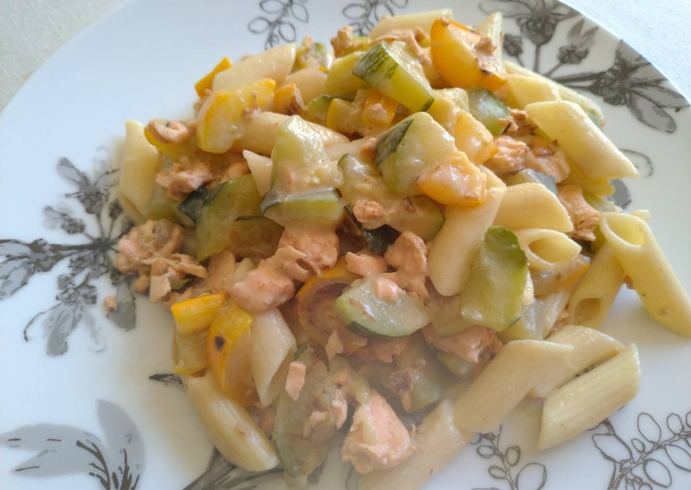 Poêlée de courgettes au saumon et ses pennes