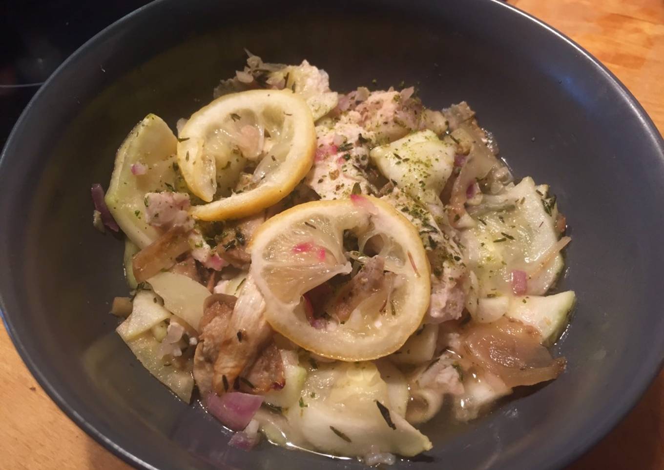 Poulet aux courgettes aubergines et citron