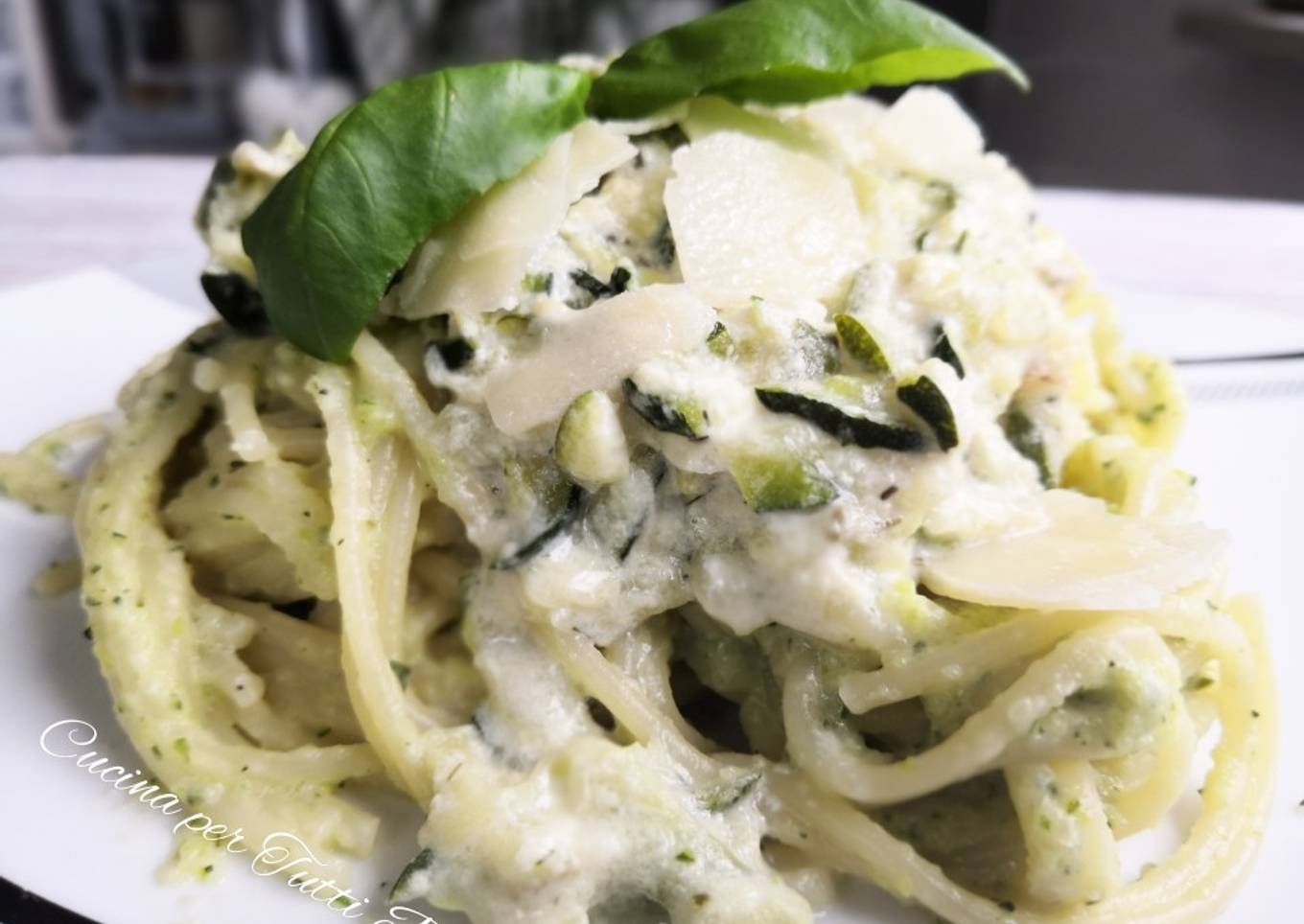 Hello everybody, it is Louise, welcome to my recipe page. Today, I will show you a way to prepare a special dish, Pâte à la crème de courgettes parmesan et basilic. One of my favorites food recipes. This time, I'm gonna make it a little bit unique. This is gonna smell and look delicious.