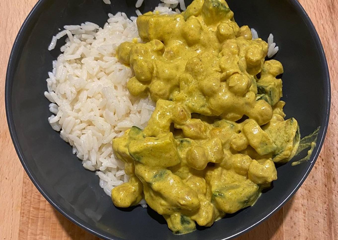 - Ajoutez le lait de coco et le curry. Mélangez bien et laissez cuire à feux doux encore quelques minutes. C’est prêt !