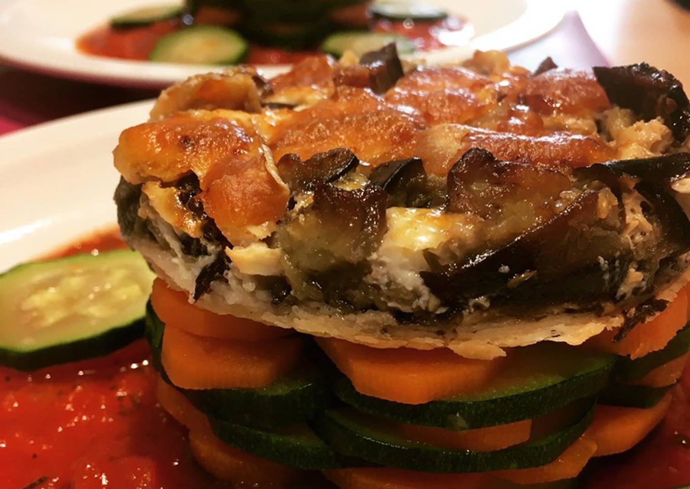 Mille et une feuille courgettes carotte,gratiné d’aubergines et sa sauce tomate