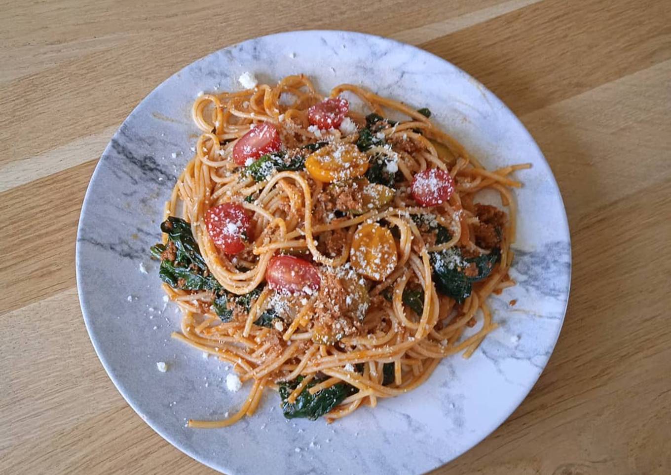Spaghetti bolognaise épicée épinards courgettes