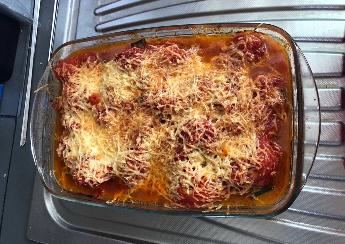 - Lorsque l’ensemble est cuit. Mettre la préparation de courgette dans un plat allant au four, mettre du gruyère râpé m. Ajouter les tomates 🍅 pelées au dessus et couvrir de nouveau de gruyère